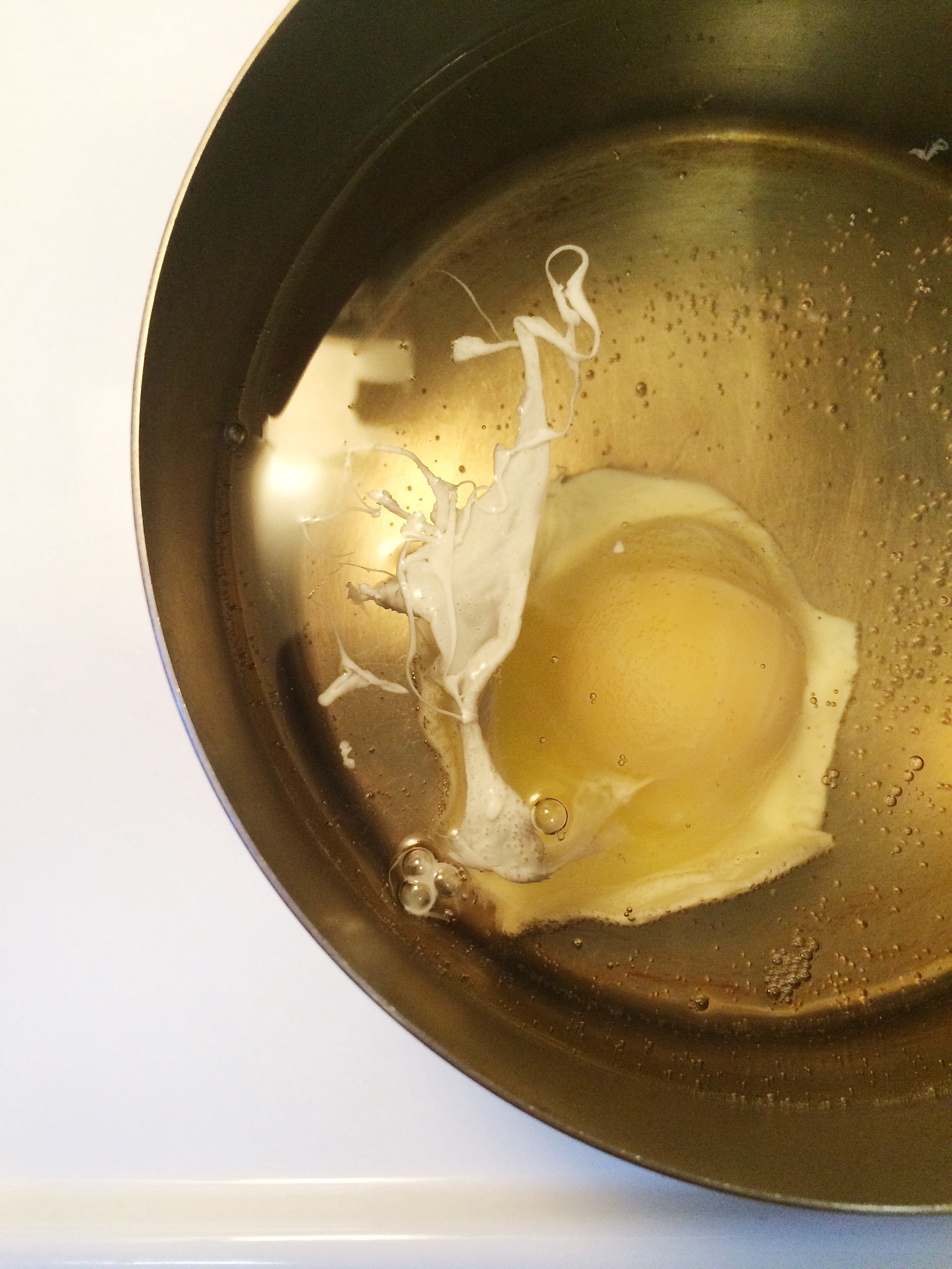 - It might get stuck to the bottom of the pot, but that’s okay. Once the white is set, take a spoon and gently remove it from the bottom so that it is floating.